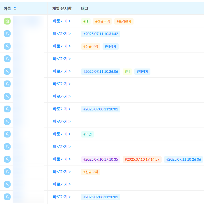 연락처는 태그를 부여하여 관리할 수 있습니다.