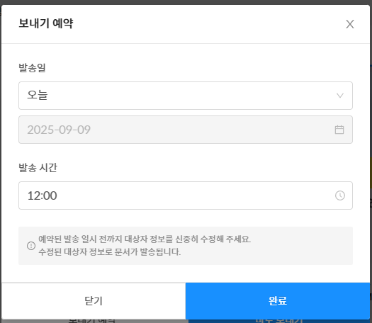 예약 시간을 지정하고, 완료를 누르면 끝입니다!